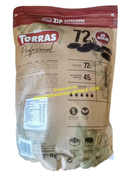 Cobertura De Chocolate Torras 1 Kilo 72% Cacao Sin Azucar